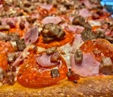 Ham, meatballs, pepperoni, bacon, sausage & tomato sauce.