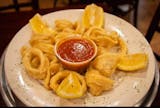 Lightly floured calamari fried golden served with lemon and side of tomato sauce mild or hot.