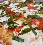 Thin crust with marinara sauce, garlic, fresh basil, our signature extra virgin olive oil mixture & light mozzarella.