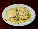 Chicken sautéed with lemon, capers, garlic and white wine.Served with your choice of pasta and bread ( tomato or marinara sauce).or House salad with your choice of dressing