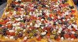 Feta cheese, gourmet garlic, mixed olives, onions & fresh tomatoes.